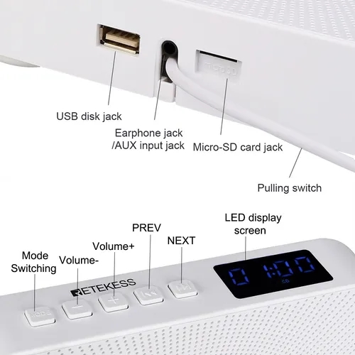 Głośnik Bluetooth: połącz się z telefonem komórkowym lub komputerem stacjonarnym przez Bluetooth, aby odtwarzać muzykę.