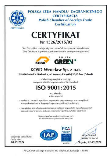 Polish Green to marka produktów firmy KOSD Wrocław sp. z o.o. , przedsiębiorstwa z polskim kapitałem i kilkudziesięcioletnim doświadczeniem. Specjalizujemy się w wydobyciu i produkcji wyrobów z serpentynitu antygorytowego - Zielonego Kamienia - z jedynego w Polsce złoża w Nasławicach na Dolnym Śląsku. Łączymy tradycję z nowoczesnym spojrzeniem na biznes.