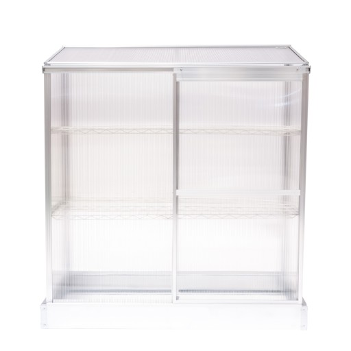 Szklarnia przyścienna pozwoli na uprawę Twoich roślin w korzystnych dla nich warunkach. Doskonałe rozproszenie światła oraz izolacja ciepła sprawiają, że rośliny rosną szybciej. Szklarnia ogrodowa przyścienna ochroni je przed trudnymi warunkami atmosferycznymi oraz zwierzętami. To świetnie rozwiązanie, jeśli posiadamy ogród o ograniczonej przestrzeni. Mała szklarnia przyścienna posiada lekką i wytrzymałą konstrukcję. Istnieje możliwość regulacji wysokości otwieranego dachu, co zapewnia bardzo dobry przepływ powietrza. Szklarnia ma także przesuwne drzwi na rolkach.
