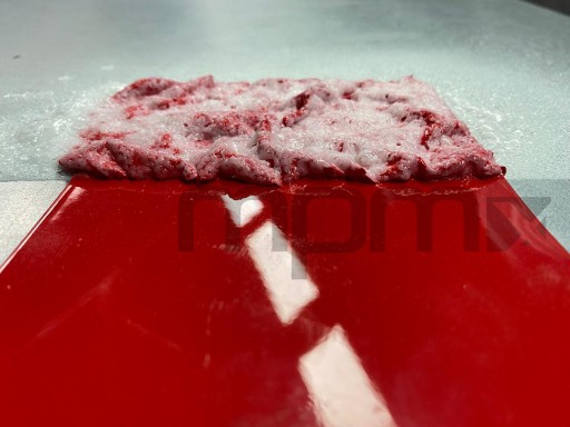- Spłukać powierzchnię rozpuszczalnikiem nitro, zmywaczem silikonowym lub szpachlą. Rozpuszczone pozostałości lakieru usuwa się mechanicznie, a resztki zmywa wodą.