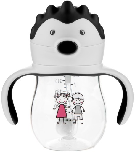 Bidon z silikonową słomką zakończoną odważnikiem umożliwia picie pod każdym kątem. Wykonany z nowoczesnego tworzywa – TRITANU, całkowicie wolny od bisfenolu A (0% BPA). Technologia ta powoduje, że bidon się nie rysuje i nie przebarwia. Jest bardzo odporny na uszkodzenia, a wyglądem przypomina szkło. Dziecko pije do ostatniej kropelki. Twój maluszek może pić przechylając kubek nawet do góry nogami. Niezastąpiony w domu i w podróży. Szczelne zamknięcie zapobiega wylewaniu się picia i chroni słomkę przed zabrudzeniem. Wygodne otwieranie poprzez naciśnięcie guziczka. Transparentność i wyraźna podziałka pozwala na kontrolowanie ilość płynu. Kubek można myć w zmywarce na górnej półce (ale bez słomki). Pojemność 250 ml