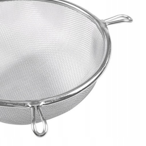 Stalowe sitko kuchenne o drobnch, gęstych oczkach. Idealnie sprawdzi się przy posypywaniu babeczek cukrem pudrem, przesiewaniu mąki czy odcedzaniu makaronu lub warzyw.