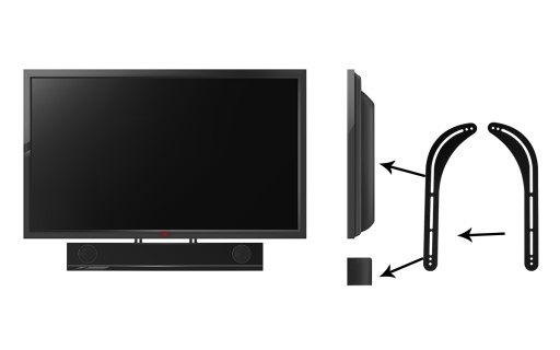 Uchwyty pasują do Soundbar'ów, które posiadają otwory montażowe w tylnej obudowie.