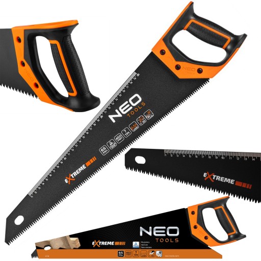 Piła płatnica 450 mm, 41-116, NEO przeznaczona do cięcia różnego rodzaju materiałów. Narzędzie ma ostry brzeszczot wykonany ze stali hartowanej indukcyjnie, został pokryty warstwą ochronną PTFE. Również zęby zostały zahartowane indukcyjnie. Dodatkową ich cechą jest ostrzenie w 3 płaszczyznach (3D), co daje im bardzo dużą ostrość. To wszystko sprawia, że ta piła ręczna jest uniwersalnym narzędziem do cięcia wielu elementów budowlanych. Pozwala ciąć pod różnymi kątami.
