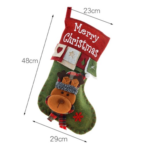 Jeśli chodzi o wymiary, świąteczna skarpeta ozdobna ma 48 centymetrów wysokości, 29 centymetrów długości na dole, oraz 23 centymetry długości u góry. Produkt został wyposażony także i zaczep, dzięki któremu z łatwością zawiesimy naszą skarpetę przykładowo na oknie, na kominku, czy też na ścianie.
