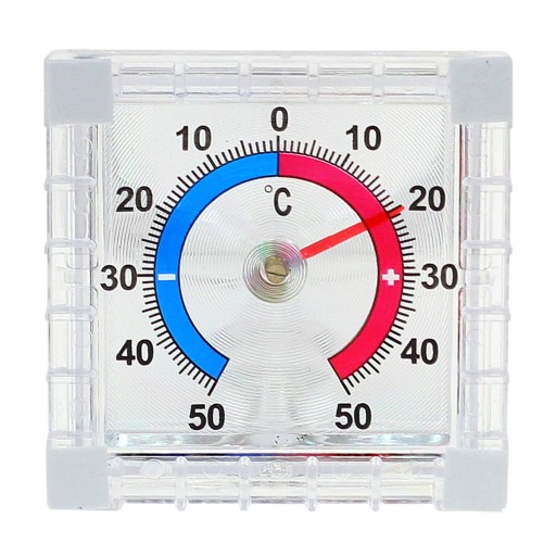 Samoprzylepny zaokienny termometr analogowy.