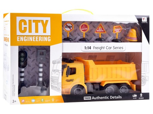 Auto wywrotka to idealny zestaw którego nie może zabraknąć na żadnym placu budowy. Dzięki efektom świetlnym i dźwiękowym zapewni radość i wyśmienitą zabawę na długie godziny. Samochód w zestawie posiada znaki drogowe oraz sygnalizację świetlną, która po wciśnięciu przycisku znajdującego się na podstawie świeci na czerwono, pomarańczowo i zielono. Zestaw zawiera również fotoradar imitujący dźwięk oraz światło zrobionego zdjęcia.
