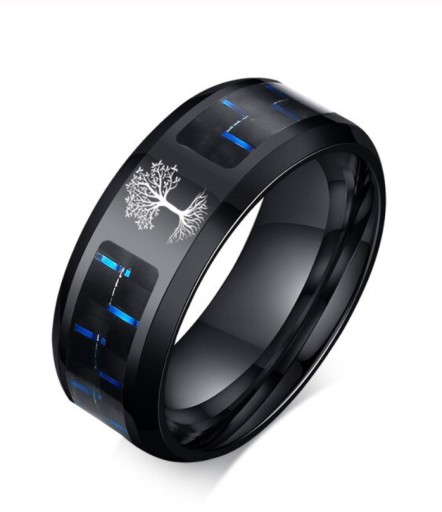 ЧЕРНОЕ КОЛЬЦО-ПЕЧАТКА ИЗ УГЛЕРОДНОГО ВОЛОКНА ДЕРЕВО ЖИЗНИ R20
