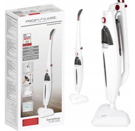 Mop parowy ProfiCare PC-DR 3093 to skuteczne urządzenie czyszczące. Para wodna usuwa nawet uporczywy brud - ponadto dezynfekuje i odtłuszcza czyszczone powierzchnie. Urządzenie nie pozostawia osadu kamienia, smug i nie niszczy czyszczonych powierzchni.