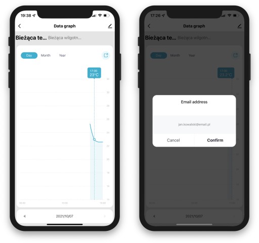 Czujnik umożliwia ustawienie automatyzacji i uruchamianie lub wyłączanie innych urządzeń dodanych do aplikacji TUYA na podstawie pomiaru temperatury i wilgotności.
