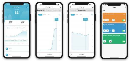 - Automatyzacje na podstawie pomiarów jasności, temperatury i wilgotności