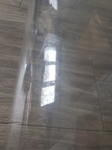 Mata posiada po obu stronach białą ochronna powłokę, aby była przezroczysta należy ją ściągnąć z obu stron.