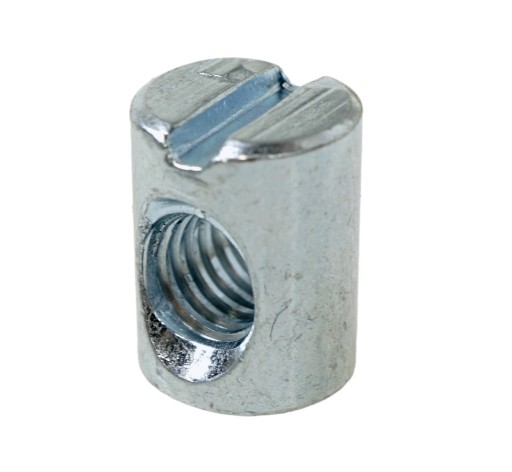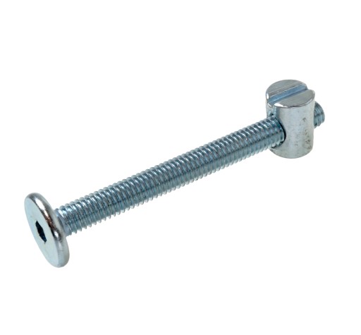 Złącze młoteczkowe do połączeń meblowych z nakrętką wałeczkową. Jest to ekonomiczne i mocne złącze do łóżek lub innych połączeń pod kątem 90 stopni. Jest to standardowe połączenie 90 stopni, do montażu konstrukcji łóżka. Połączenie jest bardzo mocnym rozwiązaniem, ponieważ w tym przypadku pracuje metal z metalem (wkręt z nakrętką wałeczkową). Montaż należy dokonać poprzez wkręcenie śruby nacięciem na klucz imbusowy SW-4 mm na nakrętkę wałeczkową. Podana cena za 1 kpl. złącza z nakrętką wałeczkową.