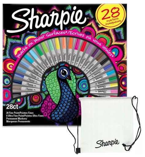 Маркеры Sharpie CREATIVE перманентные мелкие 28 цветов ПАВЛИН В ПОДАРОК