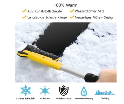 - ❄️Bardzo stabilna głowica szufli ABS: twardy plastik ABS, bardziej twardy niż normalne szufelki do śniegu, wytrzymała i trwała, dobra odporność na zimno, może skrobać lód i odgarniać śniegu, delikatna i gładka głowica szufli nie porysuje samochodu.