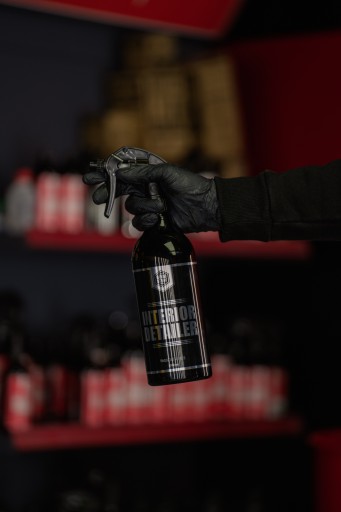 Interior Detailer – Quick Detailer do wnętrza posiadający cechy cleanera oraz dressingu. Jednocześnie czyści oraz zabezpiecza powierzchnie wewnątrz auta. Jest bezpieczny dla wszystkich elementów. Pozostawia hydrofobową warstwę ochronną. Dodatkowo działa antystatycznie i chroni wnętrze samochodu przed działaniem promieni UV. Idealna propozycja dla osób, które z różnych względów nie chcą używać dwóch różnych produktów żeby wyczyścić oraz następnie zabezpieczyć elementy w środku auta. Nałożony pozostawia w samochodzie przyjemny zapach męskich perfum.