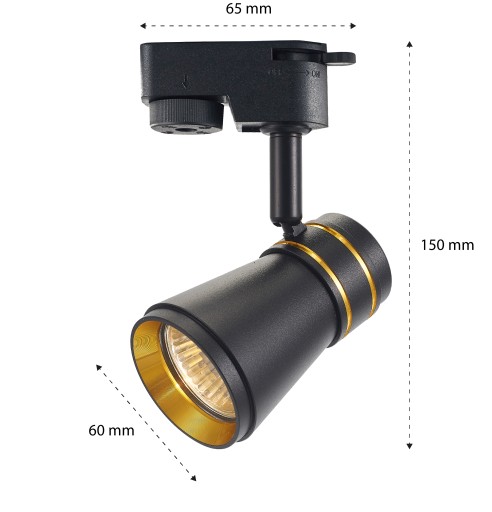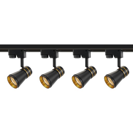 Zestaw Szynoprzewód ZX szyna 1-faza natynkowa 2m czarny + 4x Reflektor szyna 1-faza GU10 Silvio Gold 60mm czarna (4x 7445 + 1x 4549)