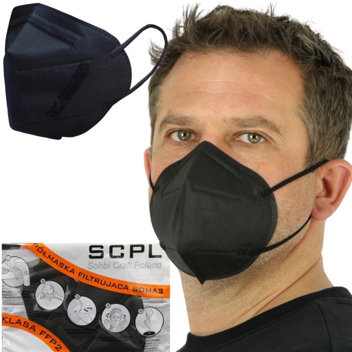 POLSKA CZARNA MASKA FILTRUJĄCA FFP2 Z CERTYFIKATEM !!! 50 szt.