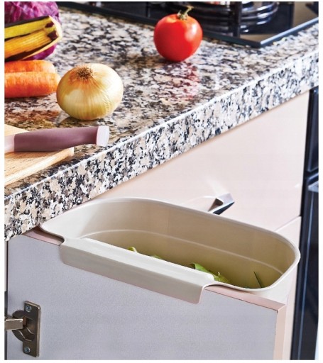 Lekka i zarazem solidna konstrukcja ułatwia korzystanie z niego na dowolnej powierzchni blatu. Wystarczy powiesić kosz na szafce lub szufladzie do 2 cm grubości, a obieranie owoców czy warzyw będzie przyjemnością. Pojemnik zajmuje mało miejsca dzięki czemu idealnie sprawdzi się nawet w małej kuchni.