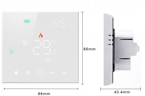 Estetyczny wyświetlacz przykuwa uwagę, oferowany termostat cyfrowy posiada elegancki i nowoczesny design. Wszystkie jego funkcje mogą być łatwo dostępne i kontrolowane poprzez intuicyjny interfejs użytkownika z aplikacji lub przycisków dotykowych na panelu. Dzięki nowoczesnej konstrukcji idealnie wpasuje się we wszystkie wnętrza domu czy biura.