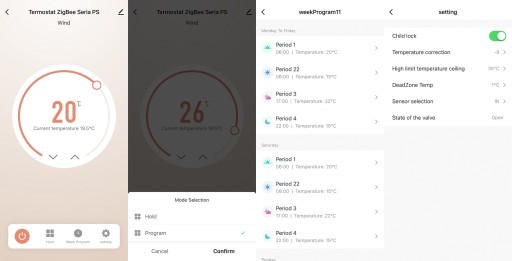 Oferowany model z funkcją termostatu oraz sterowania poprzez aplikację TUYA posiada w pełni programowalny interfejs.