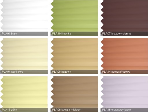 - Na tej aukcji proponujemy żaluzje plisowane z materiałem z grupy PLA obustronnie w podobnym kolorze. Im ciemniejszy odcień tkaniny, tym ciemniej będzie w pomieszczeniu.