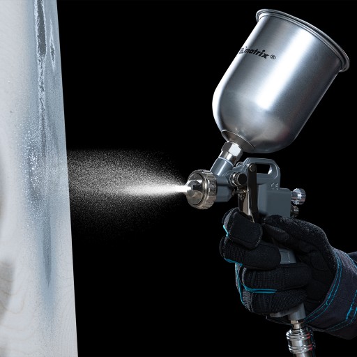 - Pneumatyczny agregat malarski Matrix 57314 ze zbiornikiem górnym o pojemności 0,6 litra i dyszami o średnicy 1,2, 1,5 i 1,8 mm służy do malowania powierzchni oraz nakładania mas ochronnych.