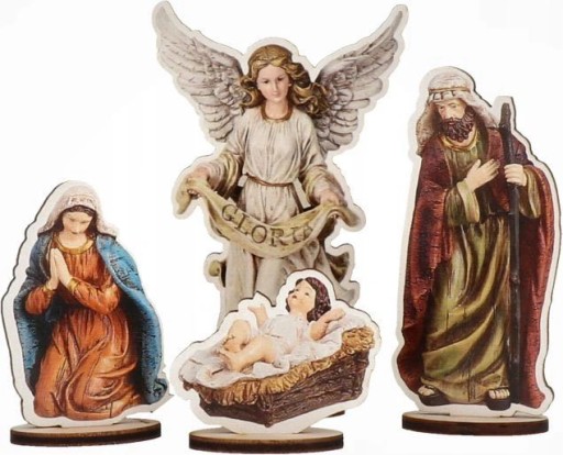 Figurki wykonane z drewnianej sklejki z zastosowaniem nadruku utwardzaną farbą.