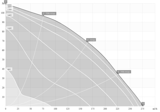 W komplecie dostarczane są śruby służące do montażu z podstawą dachową. Wentylator został wyposażony w wirnik typu B o łopatkach pochylonych do tyłu (wyważany dynamicznie podwójny stopień wyważenia w klasie G 6.3).