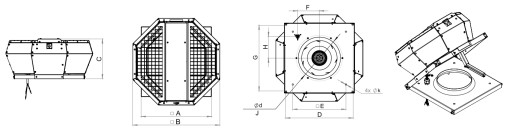 Dachowy wentylator promieniowy z wyrzutem pionowym z silnikiem umieszczonym w strumieniu przepływającego powietrza. Obudowa (boczna i górna) została wykonana z wysokiej jakości niekorodującego stopu aluminium odpornego na działanie czynników atmosferycznych (AlMg3) i składa się z nisko profilowanej osłony w kształcie ośmiokąta z siatką.