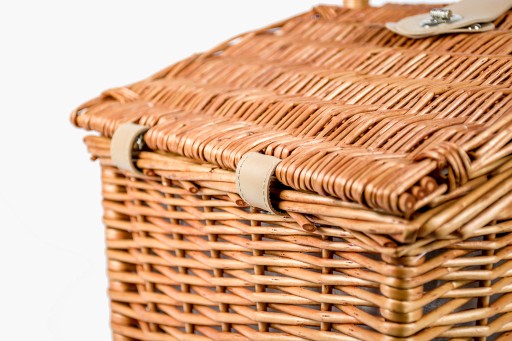 Kosz piknikowy wykonany z naturalnego materiału, jakim jest wiklina. Każdy z oferowanych koszy w całości został ręcznie wykonany. Kosz piknikowy zawiera wszystkie niezbędne rzeczy potrzebne na piknik dla 4 osób, które zapewnią przyjemne doznania kulinarne na świeżym powietrzu.