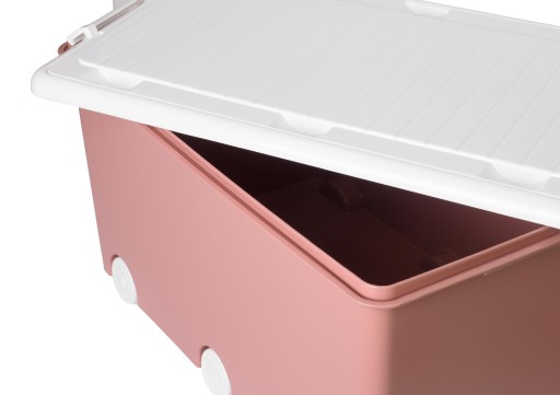 Pojemnik jest dość lekki, ale stabilny i wytrzymały. Dzięki zamocowaniu, aż 6 kółek, dziecko samodzielnie może przesuwać pojemnik i mieć swobodny dostęp do swoich skarbów!