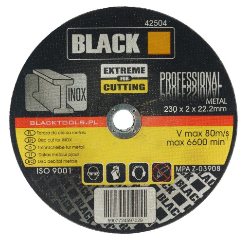 Tarcze tnące marki BLACK charakteryzują się wysoką jakością, kulturą pracy, spełniają międzynarodowe normy i wymogi w zakresie bezpieczeństwa. W odróżnieniu od wielu dostępnych na rynku odpowiedników, cechują się bardzo wysoką jakością wykonania i trwałością. To tarcze które zyskały uznanie w oczach wielu profesjonalistów. - Jest TO TARCZA 2MM , dzięki czemu zapewnia szybsze i precyzyjniejsze cięcie. Jej praca jest zdecydowanie bardziej ekonomiczna, mniej się zużywa.