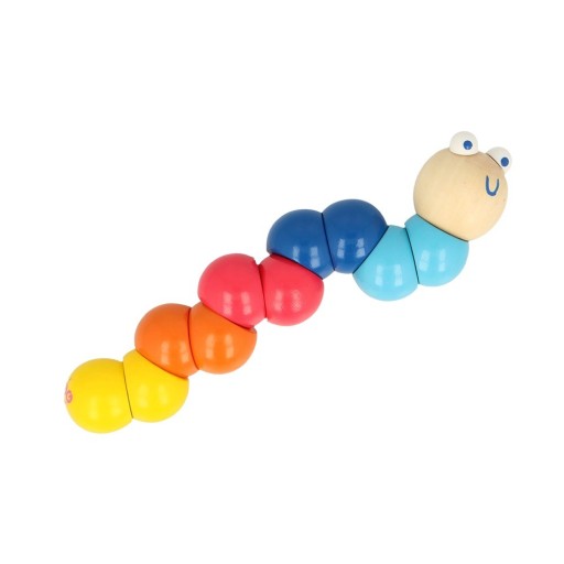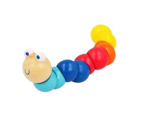 Ta przyjemna zabawka będzie idealna dla ćwiczenia małych paluszków. Robaczek składa się wyprofilowanych drewnianych koralików, które można przekręcać dzięki czemu można zmieniać jego kształt . Całość połączona jest za pomocą elastycznego sznureczka. Zabawka będzie świetnym towarzyszem zabaw. Dziecko będzie rozwijało koordynację paluszków, a żywa kolorystyka będzie zachęcała do zabawy.