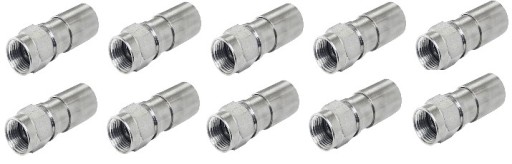 - Wtyk F kompresyjny RG6 F (10 sztuk) wykonany z metalu- wodoodporny, najwyższej jakości wtyk kompresyjny. Wtyki do średnicy kabla 6,8-7.2mm.