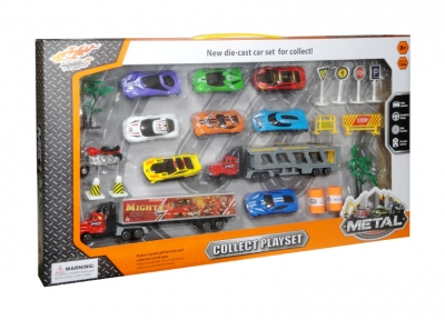 8 sportowych samochodów, 2 ciężarówki, motor, a także drogowe akcesoria to wszystko można spotkać w tym zestawie. Pojazdy są w skali: 1:64. Popchnij autko do przodu i przekonaj się, które pojedzie najdalej.