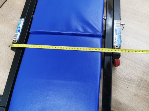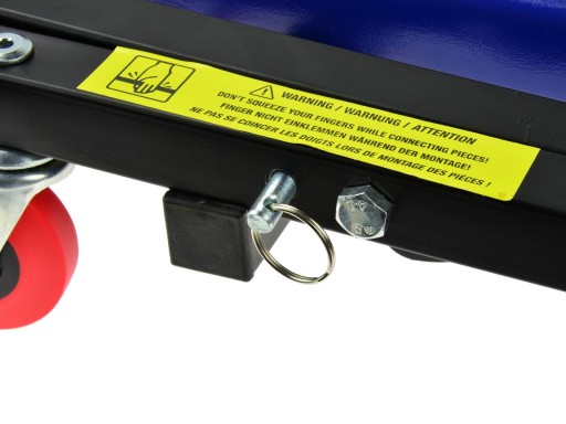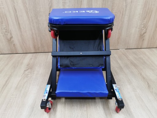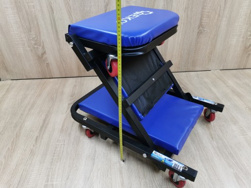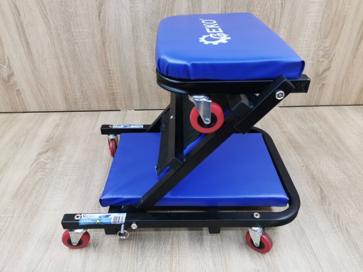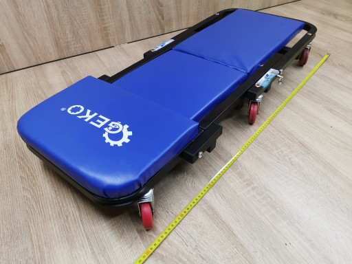 Wysokiej jakości leżanka warsztatowa z funkcją siedziska/krzesła warsztatowego.