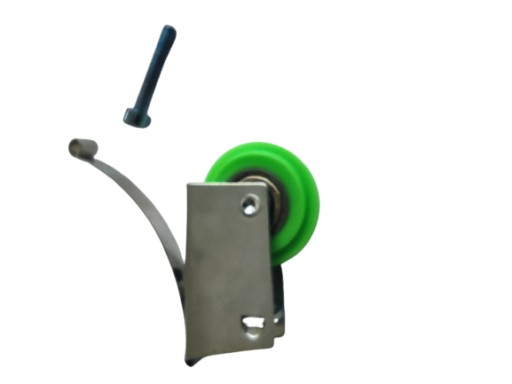 sprężynujący element zabezpieczający przed wypadnięciem wózka z toru. Wózek posiada kółko z wytrzymałego