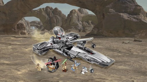 Wytrop Jedi z pokładu zaawansowanego statku Sith Infiltrator z serii LEGO® Star Wars. Osobisty statek Dartha Maula, podarowany mu przez jego mistrza — Dartha Sidiousa, ma wszystko, co potrzebne do wykonania poleceń mrocznego lorda: wysuwane podwozie, składane skrzydła, otwierany kokpit z miejscem na minifigurkę i 2 działka sprężynowe ładowane od przodu lub od tyłu. Po wysłaniu robotów-sond i namierzeniu wroga wskocz na swój ścigacz i ruszaj do ataku. Mając moc Sithów po swojej stronie jesteś w stanie stawić czoła każdemu mistrzowi Jedi! W zestawie 4 minifigurki z bronią: Darth Maul, Qui-Gon Jinn, młody Anakin Skywalker oraz Watto, a także R2-D2.