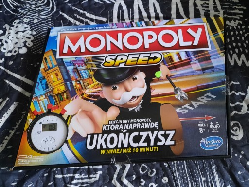 W grę planszową Monopoly Speed można grać w niecałe 10 minut! Wszyscy rzucają i kupują jednocześnie, aby gracze nie musieli czekać na swoją kolej. Podczas 4 rund gracze ścigają się z czasem, aby kupować, handlować i sprzedawać nieruchomości szybciej niż kiedykolwiek. Czasomierz odlicza każdy etap kupna i handlu i nie ma przerwy między etapami. Każdy gracz oprócz swojej figurki ma również kostkę w odpowiednim kolorze! Gra planszowa Monopoly Speed to świetny wybór na rodzinne wieczory gier, imprezy z przyjaciółmi i szybką przerwę od codzienności.