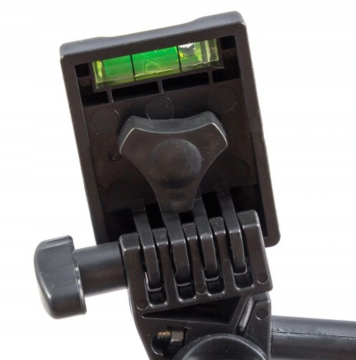 - Poziomica podłużna w głowicy umożliwia dokładne wypoziomowanie znajdującego się na niej aparatu.
