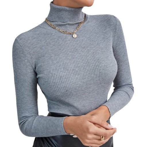 Sweter wykonany z cienkiego, miękkiego materiału, posiada wywijany golf. Doskonale dopasowuje się do każdej sylwetki.
