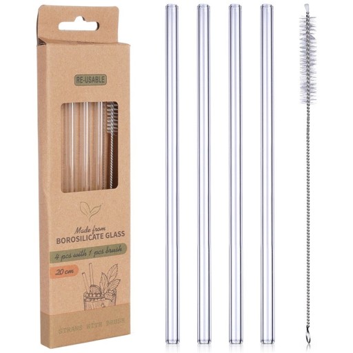 4x Słomki rurki SZKLANE do napojów drinków wielorazowe wielokrotnego użytku