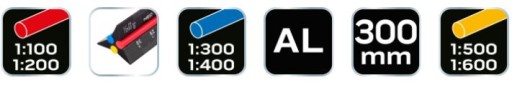 Linijka trójkątna, 30 cm, znaczniki kolorystyczne wykonane z PCV, wykonane z wysokiej jakości anodowego aluminium, boki linijki oznaczone kolorami w zależności od skali dla łatwego wyboru pożądanej skali: