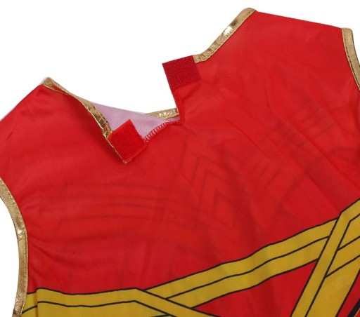 Kostium idealny dla małych dziewczynek, a zwłaszcza dla wielbicielek superbohaterek, dobrze wykonany w odcieniach koloru czerwonego z elementami w kolorze niebieskim i złotym. Dzieci zakładając strój bohaterki z komiksu mogą poczuć się jak ulubiona postać. Kostium gwarantuję fantastyczną zabawę rozwijającą wyobraźnię dziecka.
