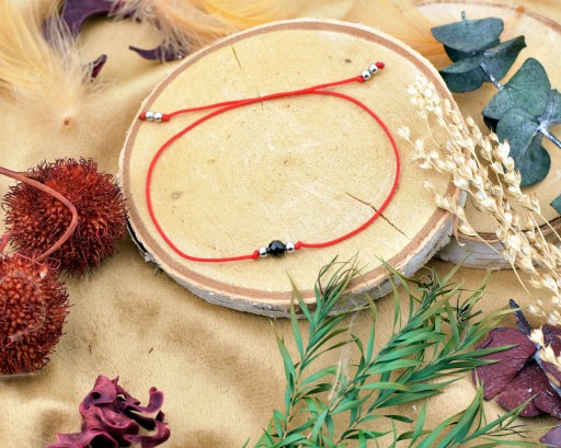 Bransoletka Szczęścia Czarny Turmalin Czerwona Nitka Kabała Damska Sznurek