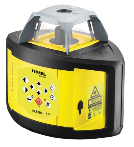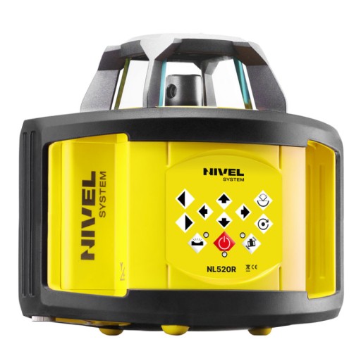 Laser obrotowy Nivel System NL520R to wszechstronne i wielofunkcyjne narzędzie do realizacji prac wewnątrz pomieszczeń (z widoczną, czerwoną wiązką lasera), jak i na otwartych przestrzeniach (z wykorzystaniem czujnika). Instrument wyznacza płaszczyznę poziomą, pochyloną, pionową (po obróceniu go o 90°), a także, dzięki pionownikowi, określa pion lub kąty proste. NL520R przeznaczony jest do prac ogólnobudowlanych. Jego mocną strona jest trwałość i odporność na warunki atmosferyczne oraz wydajne akumulatorki litowo-jonowe zapewniające kilkadziesiąt godzin ciągłej pracy w terenie. Sprzęt jest przyjazny użytkownikowi dzięki intuicyjnemu interfejsowi i możliwości zdalnej obsługi za pomocą pilota.