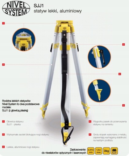 ALUMINIOWY GEODEZYJNY STATYW DO NIWELATORA SJJ1