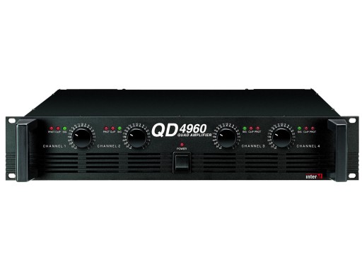 QD-4960ji w profesjonalnych systemach PA lub do urządzeń przenośnych lub używania do występów na żywo. Zaprojektowany głównie do użytku wielostrefowego, np. W klubach muzycznych, salach konferencyjnych, różnych instytucjach, w klimacie domowy w barach i restauracjach, gdzie oddzielne sterowanie muzyką w kilku obszarach jest wymagane, projekty te mogą mieć zastosowanie w każdej sytuacji, w której znajduje się wiele wzmacniaczy małej mocy wymagane, takie jak źródła cue, głośniki efektów, ekspozycje muzealne itp. Dostępne są trzy modele; każdy łączy cztery oddzielne wzmacniacze o niskiej impedancji w jednej obudowie o wysokości 2U do montażu w racku. Każdy wzmacniacz ma oddzielne zbalansowane złącze wejściowe XLR / TRS „Combo”, z powiązaną kontrolą poziomu sygnalizacyjne i zaciskane diody LED oraz 5-stykowe terminale wyjściowe głośników. Dodatkową wszechstronność zapewnia selektor wejść przełącznik umożliwia sterowanie każdą parą wzmacniaczy oddzielnie (stereo), z wejściami równoległymi (dual mono) lub w mostku na mono. Na każdym kanale znajdują się ograniczniki przesterowania, które pomagają zapobiegać zniekształceniom spowodowanym nadmiernym poziomem sygnału. Wszystkie jednostki posiadają obwody zabezpieczające przed łagodnym startem oraz wskaźniki zasilania, sygnału, ochrony i przesterowania na panelu przednim. Wzmacniacze te są chłodzone wentylatorem z zabezpieczeniem obwodu i opóźnieniem włączenia. Wzmacniacze z serii quad są zasilane przez 220-240 VAC 50/60 Hz