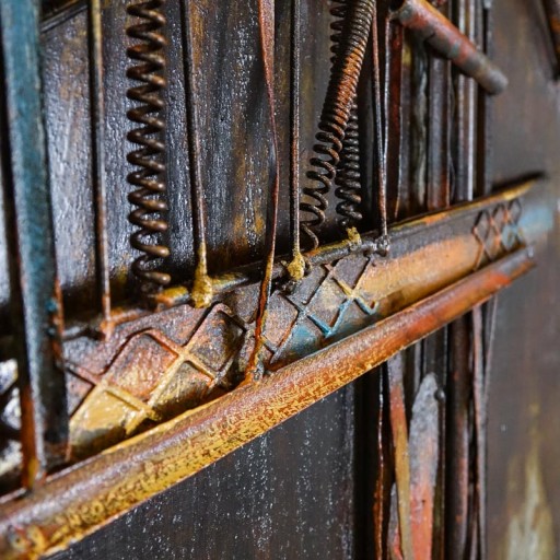 Metalowy obraz przestrzenny to prawdziwe dzieło sztuki, jedyne i niepowtarzalne w swoim designie. To kompozycja nie tylko dla miłośników sztuki, ale także dla wszystkich ceniących oryginalność. Gustownie połączone elementy stali z odzysku dają zamierzony i niepowtarzalny efekt 3D. Oprócz naniesionych kolorów, obrazy posiadają szeroką paletę barw uzyskanych w sposób naturalny, m.in. dzięki wykorzystaniu zaimpregnowanej rdzy czy prześwitom surowej stali. W celu nadania głębszego stylu industrial produkt posiada celowe "przerysowania", ślady po "odpadniętej" farbie, itp. Ręczne wykonanie zapewnia unikatowość każdego dzieła. Mocowanie dzieła sztuki jest możliwe dzięki uchwytom montażowym będącym w zestawie. Metalowy obraz 3D, to dekoracja przełamująca schematy, stanowiąca również doskonały pomysł na niebanalny prezent.
